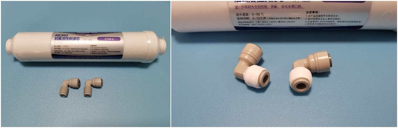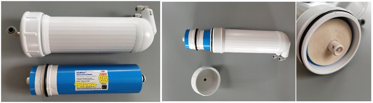 装膜壳和RO膜,膜壳拧上接头,RO膜照这个方向来安装,要插到底插到位,可能要用力压一下