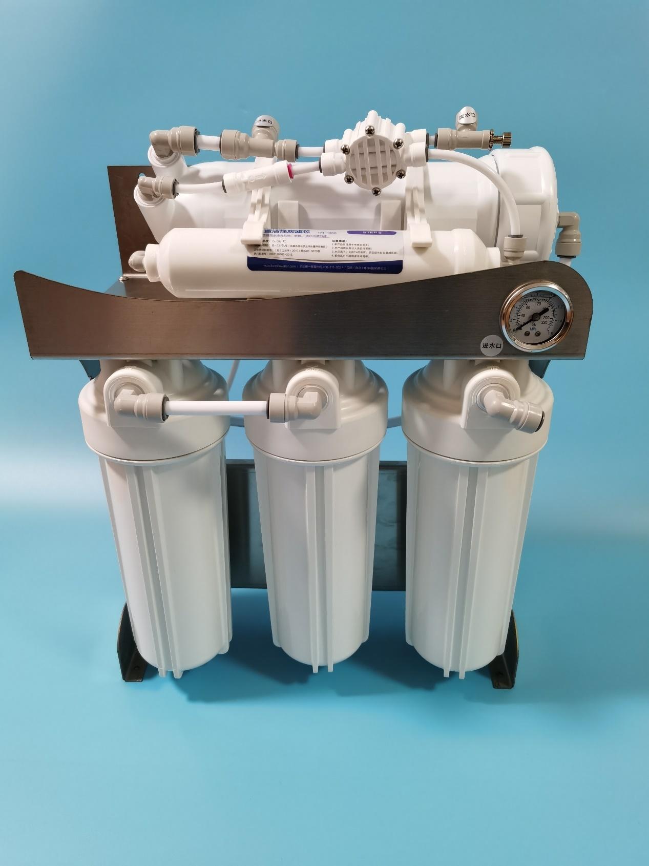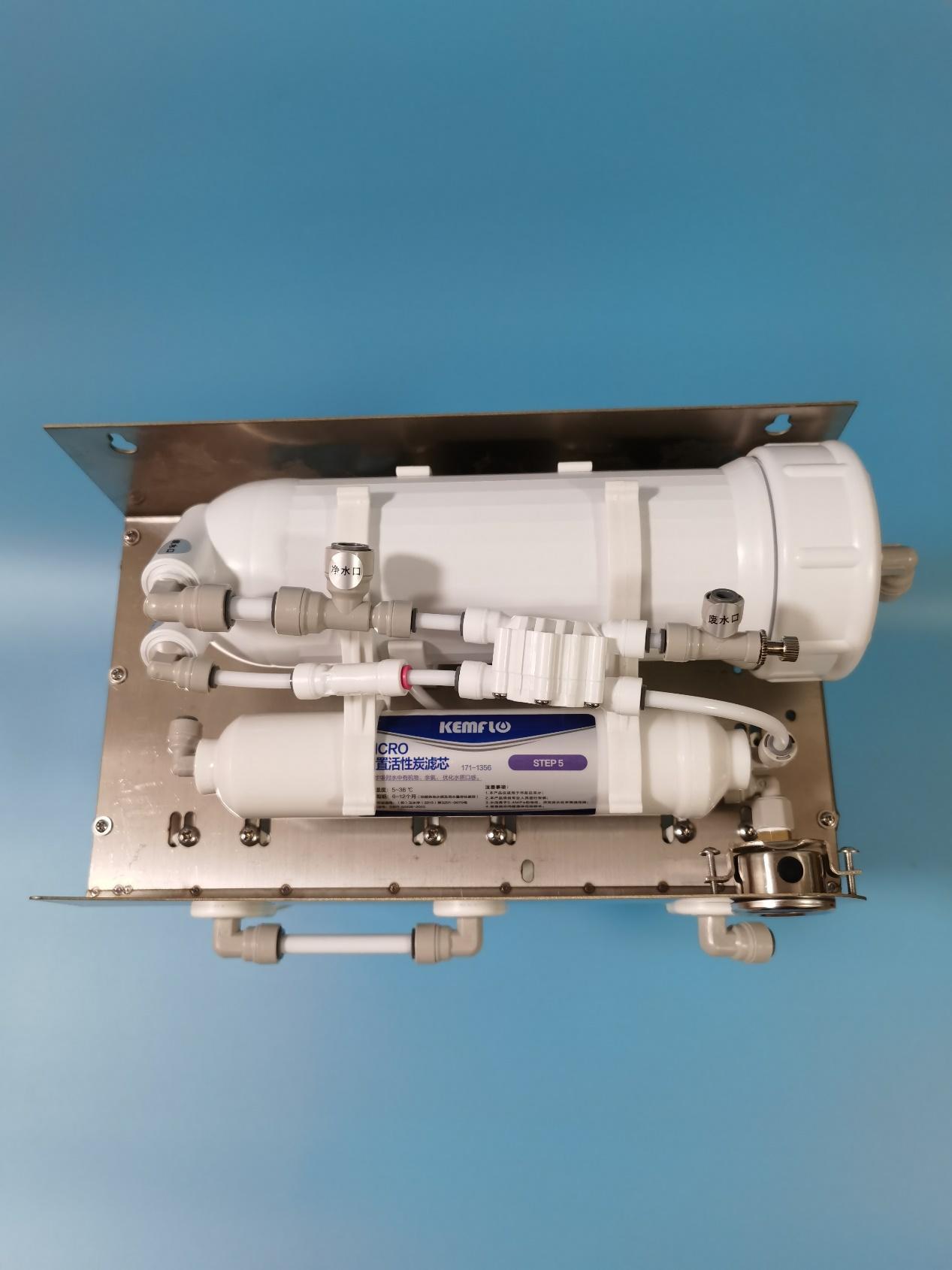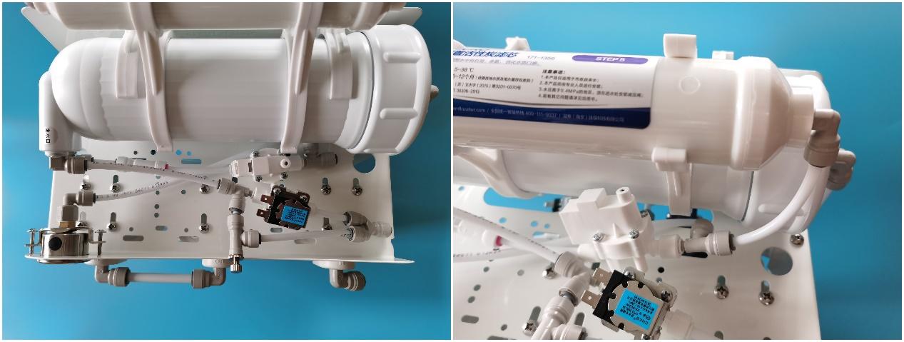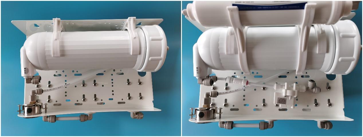 将装好RO膜的膜壳、后置炭滤芯都装上来,膜壳纯水管路装上止逆阀之后再接上高压开关