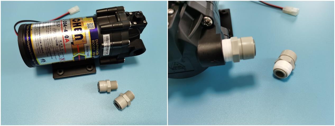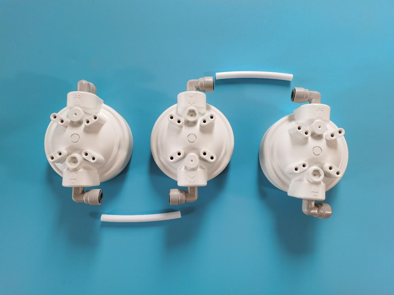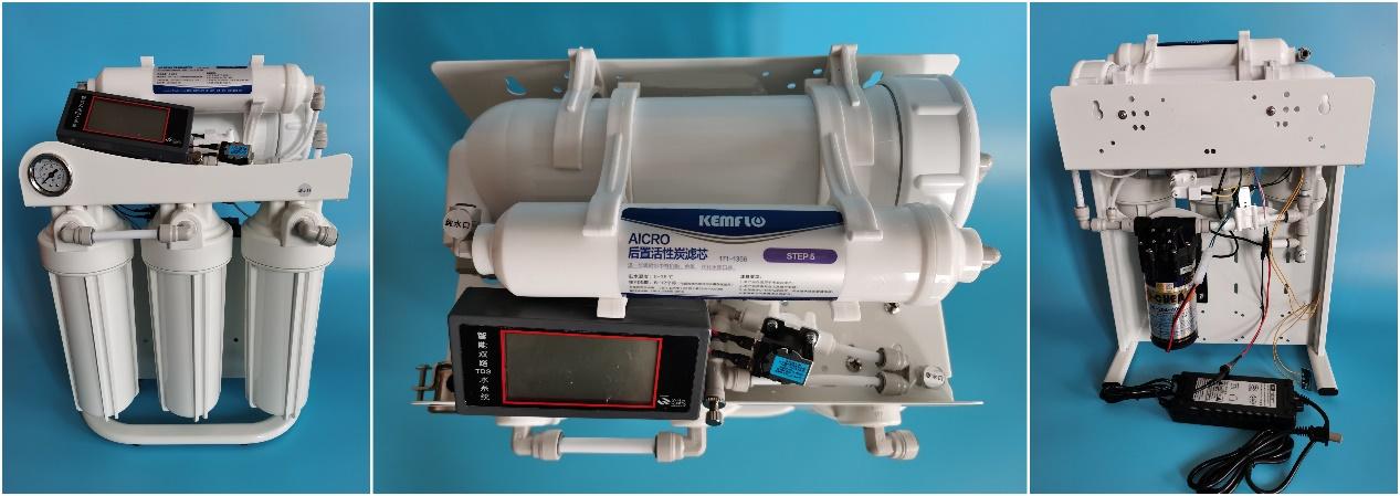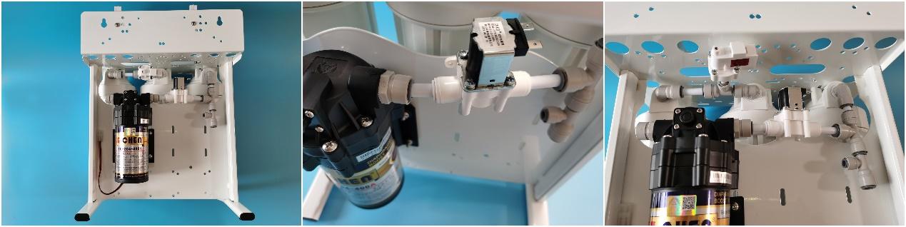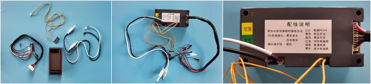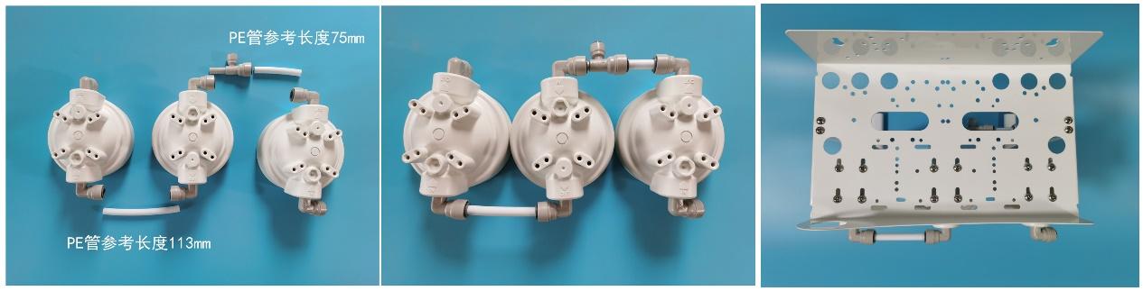 将装好RO膜的膜壳、后置炭滤芯都装上来,膜壳纯水管路装上止逆阀之后再接上高压开关