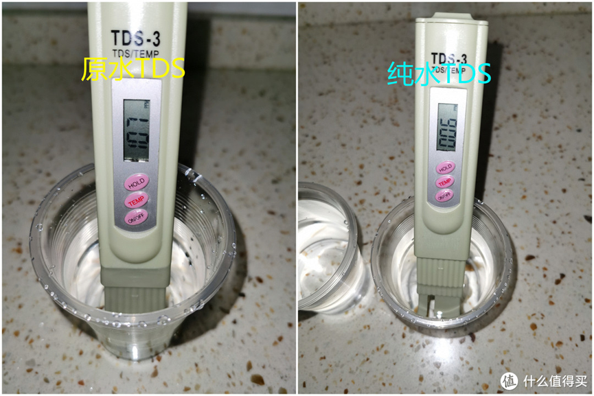 大约使用2周之后的测试结果,脱盐率有97点多了,嗯,感觉不错呢,不过这是在打开龙头制水约3分钟之后才接的水,刚制水1分钟之后的纯水TDS还没这么低,依然慢热。