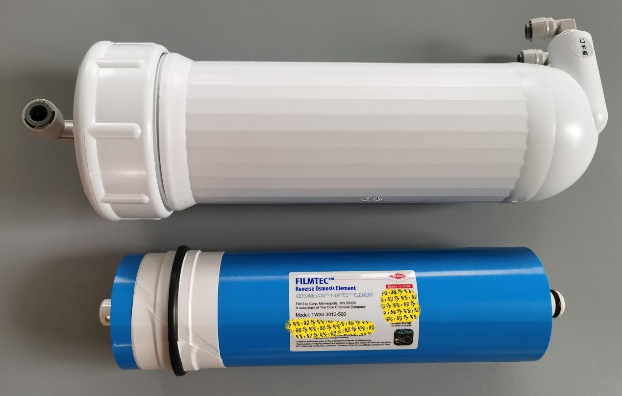 既然是打造最高端配置,那么本次RO膜毫无疑问选择了陶氏Filmtec,因为我不喜欢带压力桶,就选了500G的来做大流量无桶机。出水口感个人觉得是真的比国内某龙头膜好。