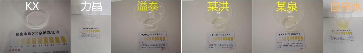 这是之前测试的各个品牌的单根CTO的余氯吸附结果,我这里自来水的余氯很高,水压也大流速快,拥有测试活性炭余氯吸附能力的良好条件,溢泰的那款CTO没有NSF认证,其余4款都有,最右边是自来水,余氯很高,以前看小区的水质检测报告大约是0.65ppm。最左边两个白色字体的表示目测没有颜色可以粗略判断余氯被吸附完了,溢泰的颜色很浅但还是有一点颜色,最后两个颜色较深,单根无法使用因为会漏掉不少余氯,表现较差也就不写上全名。但这次测试不够直观,因为我按照余氯测试剂的使用方法只取了10毫升水样本,后来发现水多一点少一点都不影响测试结果的,从此以后测试时都取半杯左右的水,效果就很好,可惜那些表现差的CTO不想再用了,没法再进行重新测试拍图了。 使用寿命方面,前置的第二和三级我以前用KX+力晶测试过,用了6个月大约处理总共60吨(6万升)自来水之后,余氯测试仍然还是无色的。