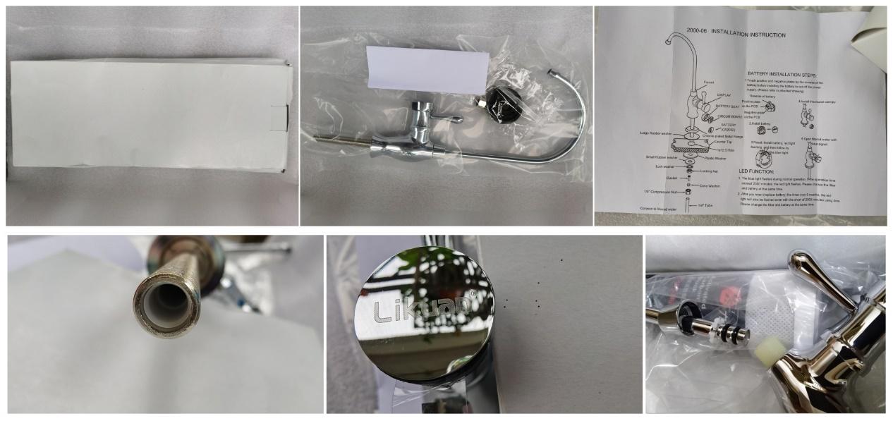 这次用的立宽龙头,初看包装似三无产品,再看龙头差点被闪瞎狗眼,我有个群友用过这款龙头之后发出惊叹说阻尼恰到好处,后面还有句儿童不宜不敢说。看表面好像是晶钻电镀工艺(不太懂这方面的知识要是说错请专业人士指正),这种工艺国内很多好点的龙头都用上了倒不稀奇,主体有隔铅工艺就比较罕见,但这款跟我的购物清单上那款不一样,这款更贵,因为要送人,就加钱选了这款,重量比那款更重,还带独立的计时模块,打开龙头时有个灯在闪,感觉比较拿的出手。 七、管剪。建议要有一把,因为净水器的水管还是要尽量剪平整,这个本来是归类到其它的,我最初是买几块钱一把的,但是后来我在这东西上花了大价钱 ,想起来巨亏 ,不拧出来说一下感觉对不起自己的钱。