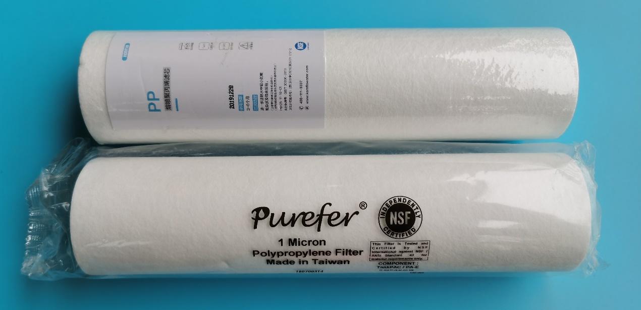 第一级PP棉用过几个品牌的之后觉得沛毅和溢泰的比较好实际的价格也比较合适,下边是沛毅的,上面是溢泰的,实际价格沛毅的比溢泰的贵点,我现在基本上都用溢泰的,精度选1微米或5微米都可以,感觉不出有多大差别,但我喜欢用1微米的。 前置的活性炭滤芯对余氯的吸附能力很重要,因为RO膜很怕余氯,个人可以用余氯测试剂测试活性炭滤芯的吸附效果,非常经济又方便,虽然不能作为权威结果但是也非常具有参考价值。